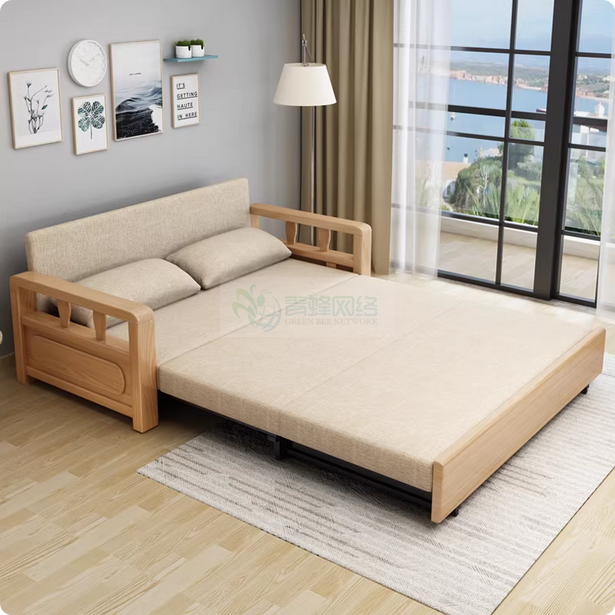 白蜡木实木沙发床现代简约客厅家用沙发原木风冬夏两用沙发拉床