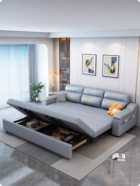 两用可折叠2025新款猫爪皮多功能客厅中小户型坐卧两用推拉沙...