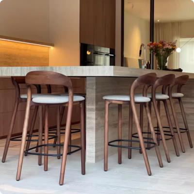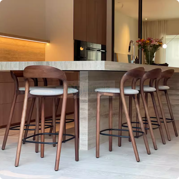 意式极简黑胡桃实木吧台椅简约家用高脚凳复古吧台凳前台酒吧椅