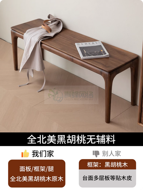 北美黑胡桃木实木长凳餐椅凳子长板凳换鞋凳长条凳条凳实木床尾凳