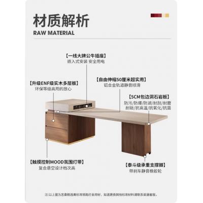 可伸缩岛台餐桌一体家用中古风高端西厨开放式岩板中岛台一体桌