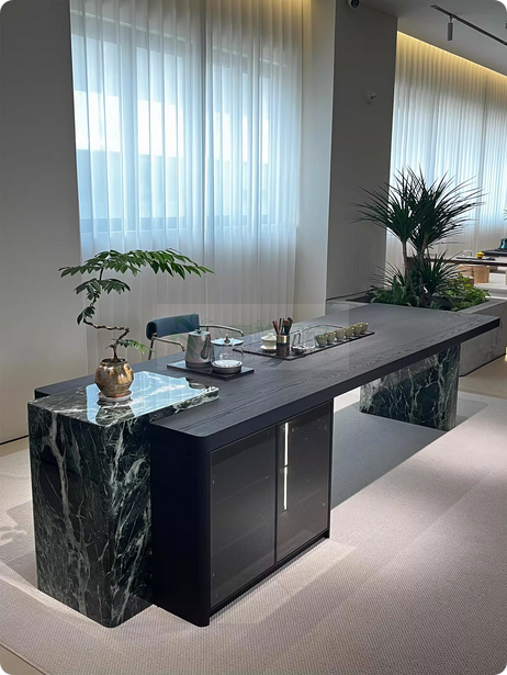 现代简约轻奢大理石茶台2026新款高级感意式极简一体式实木泡...