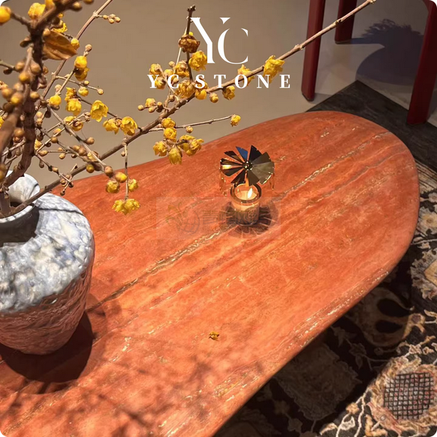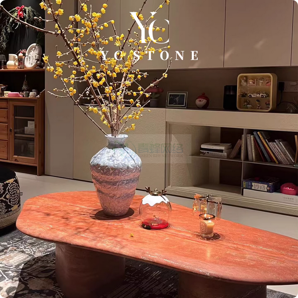 中古风天然红洞石茶几复古高级感家用茶几异形创意设计轻奢咖啡桌