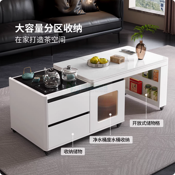 多功能电动茶几【雪山白岩板】近期热销
