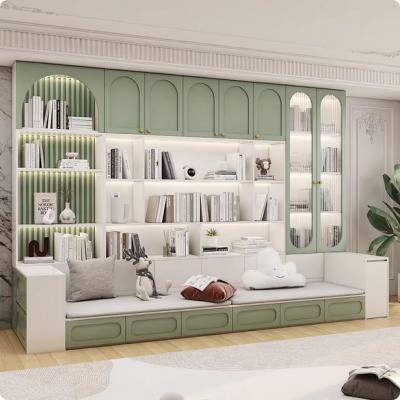 客厅沙发书柜储物柜一体满墙到顶定制美式实木书橱带卡座一体靠墙